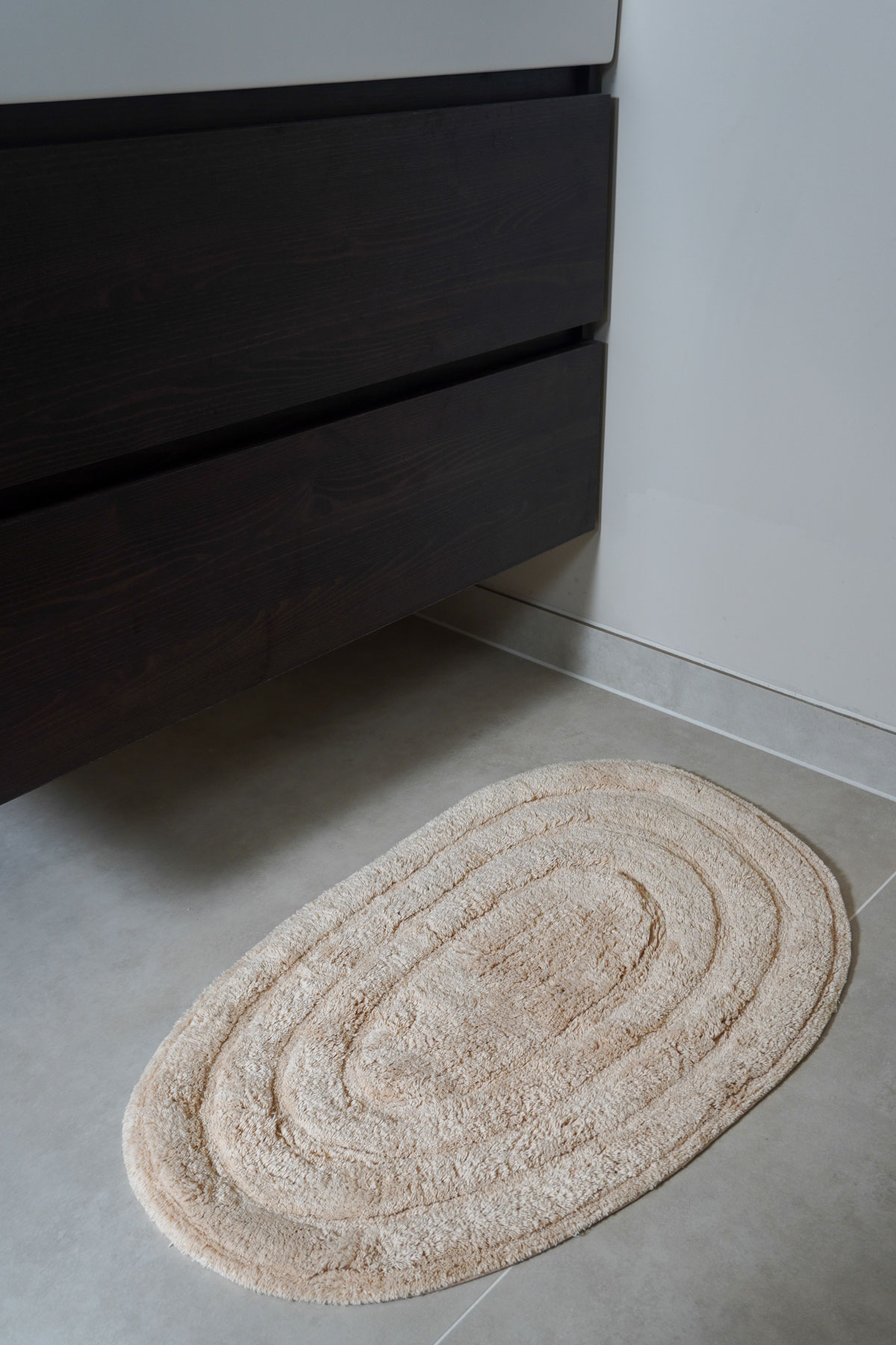Wat deze badmat speciaal maakt, is het organisch getuft dessin. Samen met de natuurlijke kleur van de mat geeft Oliver elke badkamer een moderne en natuurlijke uitstraling.